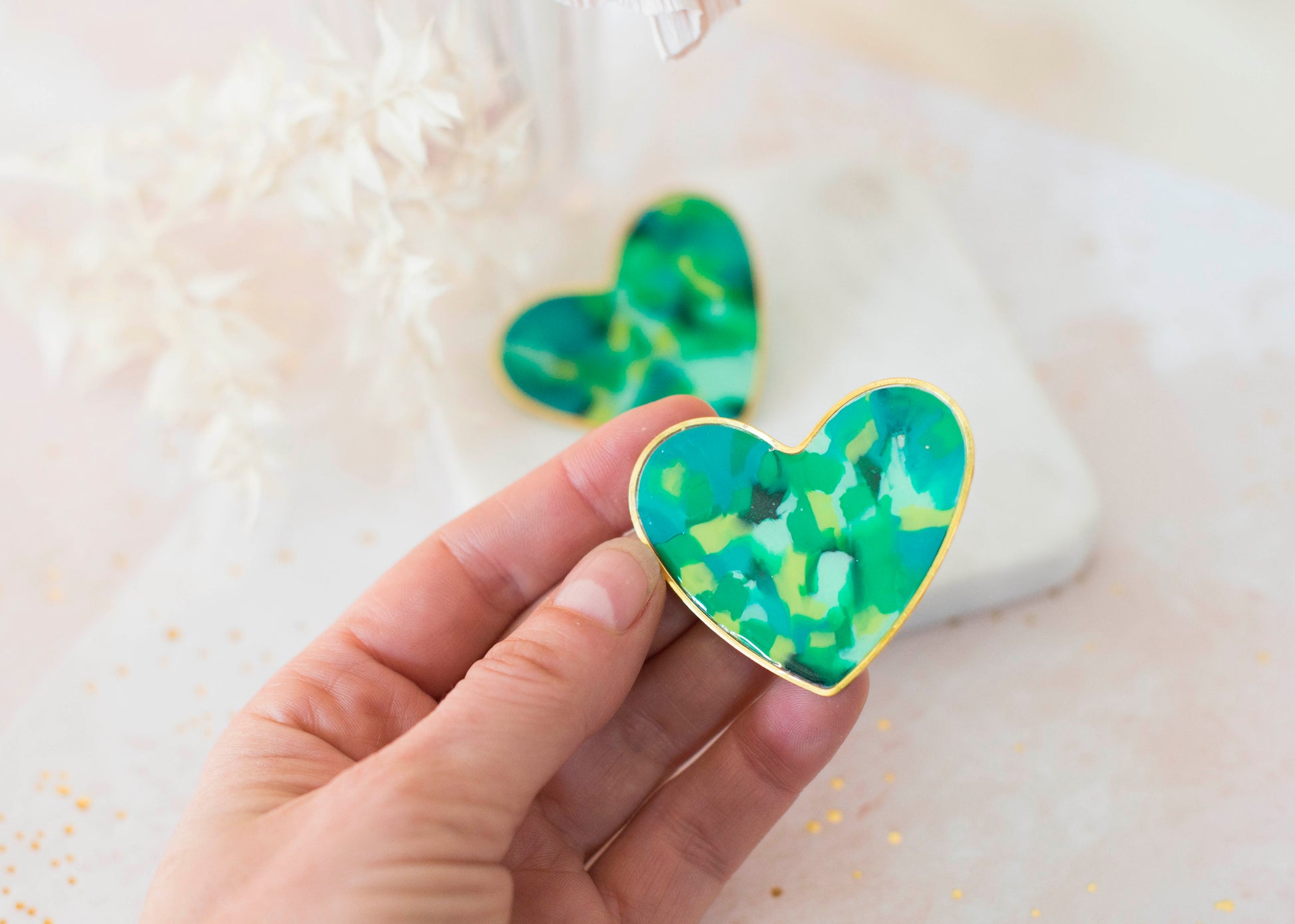 Lassen Sie Ihr Herz sprechen mit unseren „Very big HEART“-Ohrringen, einer kühnen Kombination aus leuchtenden Farben und einzigartigem Design. Diese sehr großen herzförmigen Ohrringe aus recyceltem Kunststoff verleihen Ihrem Stil einen Hauch von Frische und Modernität und verkörpern gleichzeitig das Engagement für die Umwelt.