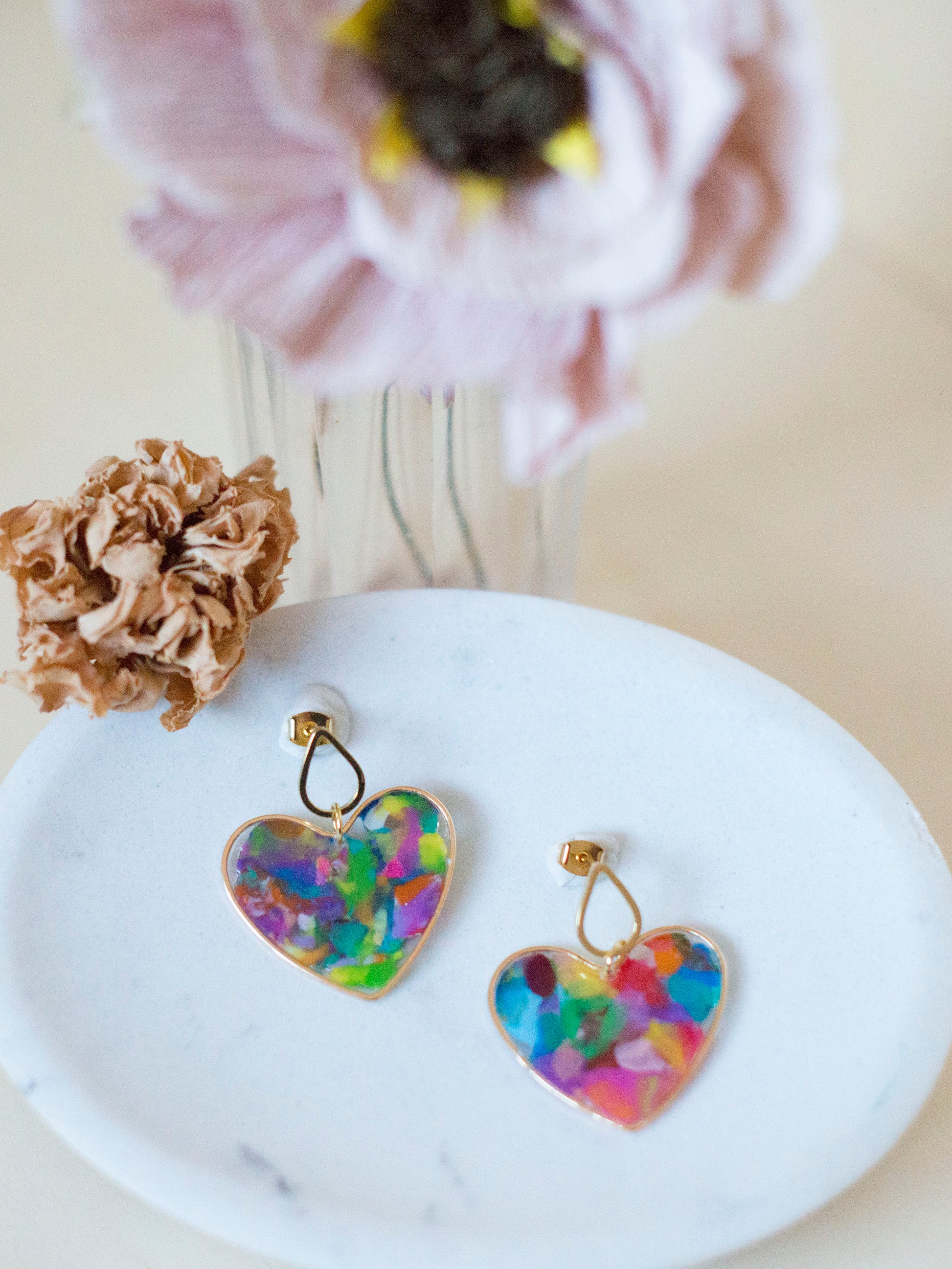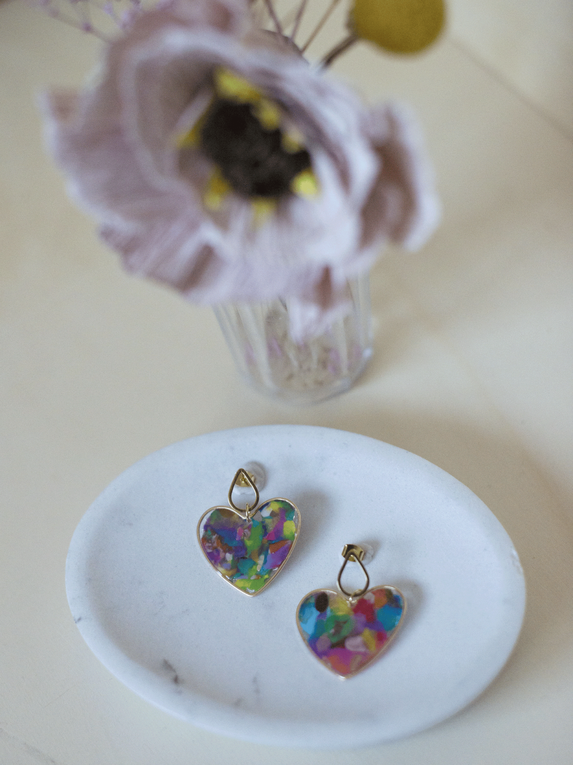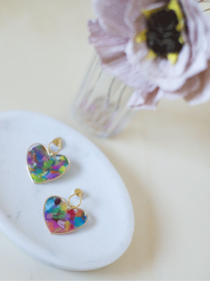 Diese farbenfrohen Locken werden aus recycelten Plastikflaschenverschlüssen hergestellt und haben die Besonderheit, dass sie im Rahmen eines Zero- Waste-Prozesses aus den Überresten anderer Modelle geformt werden! Die Herzformen, aus denen es besteht, sind eine sichere Ode an die Liebe. ❤️