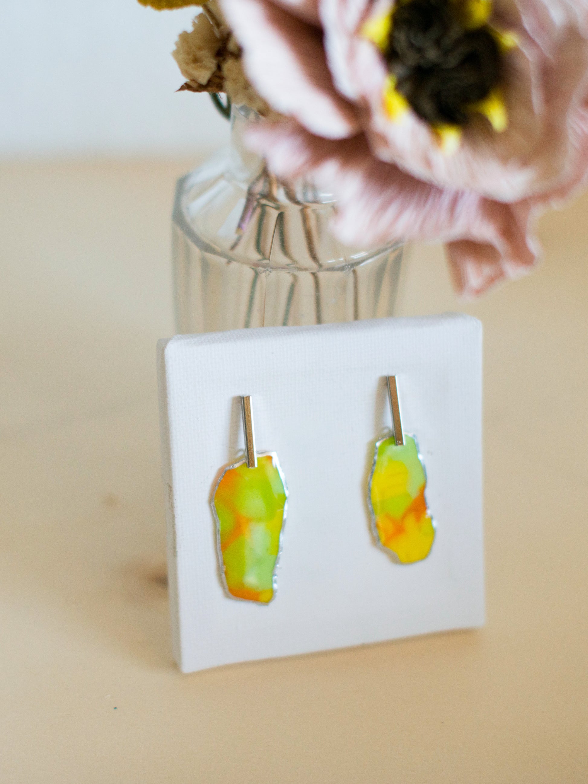 Und ja, Zitronengrün passt zu ALLEM, den Beweis mit dieser hübschen Schnalle, die aus Teilen recycelter Plastikkappen hergestellt, dann wieder eingeschmolzen und versilbert wird.